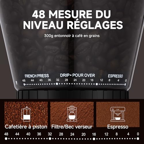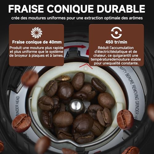 Moulin à café électrique - AMZCHEF - Modèle avec support amovible - Écran tactile LCD - 24 réglages de mouture