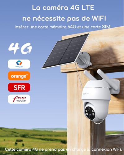 COOAU 4G LTE Camera Surveillance Extérieure sans fil - 2K 3MP Caméra Solaire sans Wi-Fi avec carte SIM | 360° PTZ | Audio bidirectionnel | Vision nocturne couleur | IP66 | Stockage local 64 Go & cloud