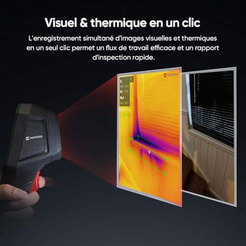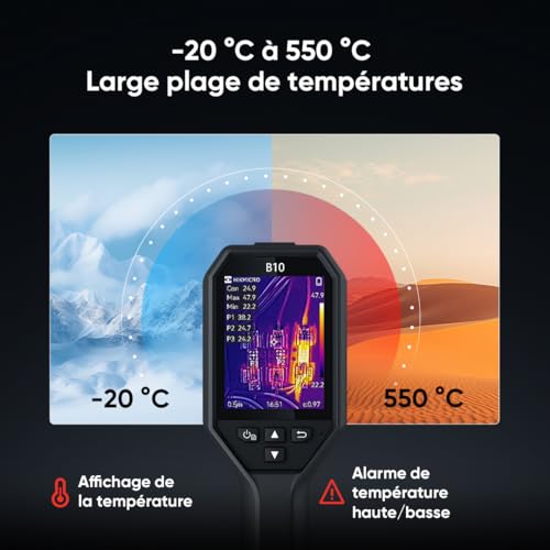 HIKMICRO B10 Caméra thermique d'une résolution IR 256 x 192 avec caméra visuelle 2MP, mesure en plein écran, 25 Hz Caméra thermique avec écran LCD 3,2", IP54, plage de température -20°C à 550°C