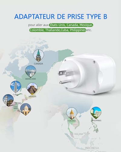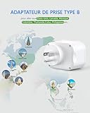 LENCENT Adaptateur Prise USA Américaine Canada Mexique Thaïlande Adaptateur de Voyage 2 Ports USB et 1 Port USB-C adapté aux États-Unis, Adaptateur électrique Mâle USA/Femelle France, Type B