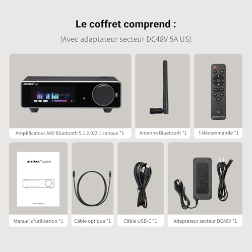 Amplificateur AIYIMA A80 DAC Stéréo HiFi 300W Classe D Bluetooth 5.1