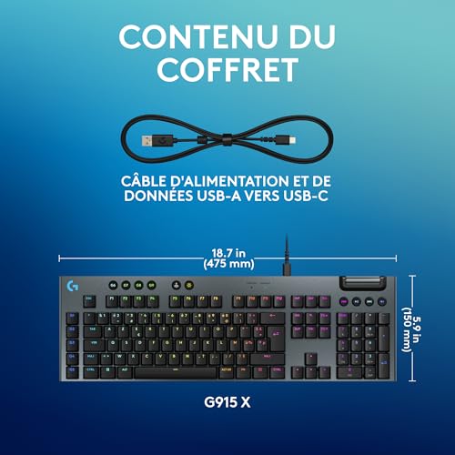 Clavier gamer - Filaire - Logitech G - G915 X - AZERTY - Switch tactile - Noir
