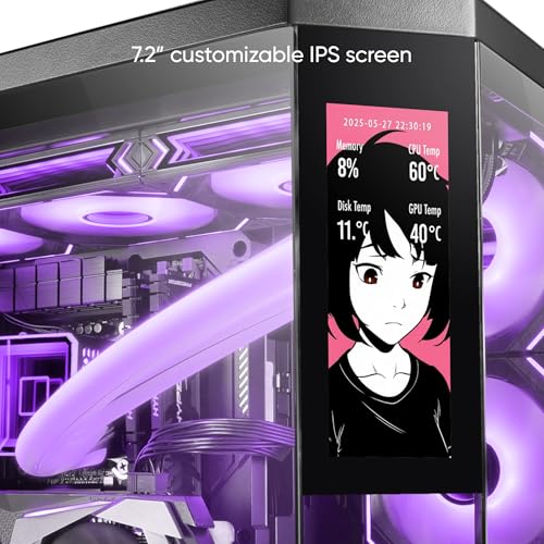 Mars Gaming MC-3TCORELCD Boîtier Gaming ATX, Écran IPS 7,2” Personnalisable, Triple Verre Trempé Amovible, Structure Double Chambre Latérale, Support de Refroidissement Liquide jusqu'à 360mm, Noir