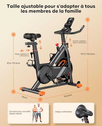TOPUTURE Velo D Appartement Magnetique, Velo Appartement Connecté APP, Résistance réglable, Vélo d'intérieur avec silencieux, Vélos D'appartement avec fréquence cardiaque Capacité 160KG
