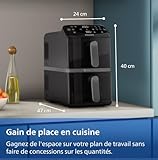 Philips Airfryer Série 4000 – Air Fryer VerticalDuo, 10L, RapidAir, 13 modes de cuisson, synchronisation, gain de 45% d’espace, revêtement céramique sans PFAS, fenêtres de cuisson, Noir (NA460/00) "
