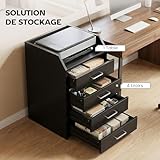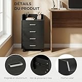 Caisson de bureau - Vinsetto - rangement à 4 tiroirs - mobile sur roulettes - bois - 40 x 36 x 65 cm - noir