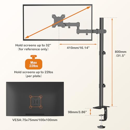 Bracwiser Support Écran PC, Bras Écran pour Moniteurs 13-32 Pouces, VESA 75/100 mm, Pied Ecran PC Réglable en Hauteur de 80cm, Rotation 360°, Pivotement 90°, Charge Max 10 KG - MD7821