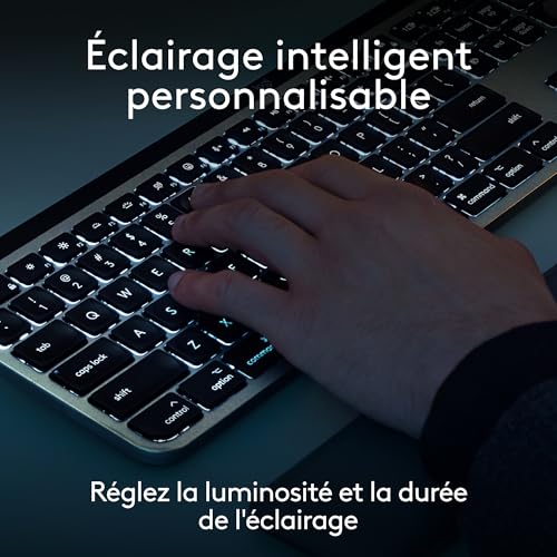 Ensemble clavier sans fil Azerty + souris sans fil rechargeable Logitech MX Keys S Combo pour Mac Gris sidéral