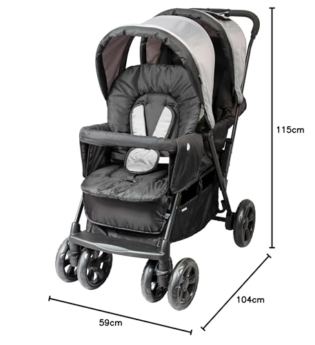 BAMBISOL | Poussette Double Bébé & Nouveau-Né | Siège Allongeable | Pliage 1 Main | Habillage Pluie Inclus | Dossiers Réglables, Harnais 5 Points | Grand Panier | Légère & Compacte | Gris Noir