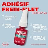 Loctite 271, frein filet résistance forte, frein filet rouge pour blocage et étancheité des fixations filetées, Flacon 5 ml - aspect rouge