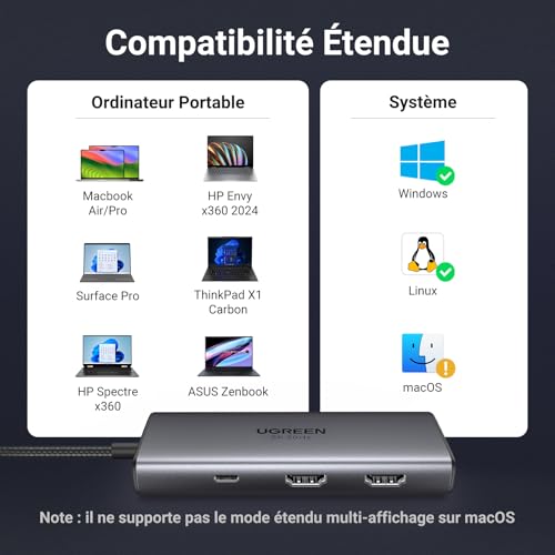 Compatible avec MacBook Pro M2/ M1, Max/ Pro, 2023 - 2016 , MacBook Air M2/ M1, Max/ Pro, 2023 - 2018 , Dell XPS 17/ 15, Surface Pro 9/ 8, Surface Go, iPad Pro, iPad Pro 2022 - 2018 , iPad Air 2022/ 2020, iPad Mini 2021, Galaxy Tab S9/ S8/ S7, Steam Deck, Switch