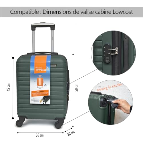 Valise cabine VA 45x36x20 sans roues - Bagage à main léger et durable taille lowcost avec roues détachables pivotantes amovibles