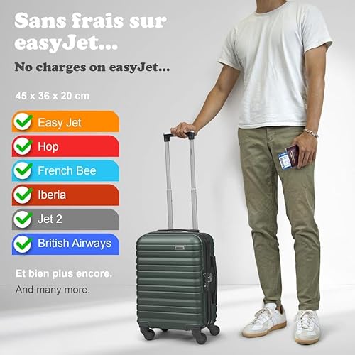 KINSTON Valise Cabine pour EasyJet 4 Roues Détachables Taille LowCost - Bagage à Main Léger et Durable, Roues Pivotantes Amovibles Démontable - Vert