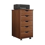 IDIMEX Caisson de Bureau Lagos L 35 cm, en Bois Massif, Meuble de Rangement sur roulettes avec 5 tiroirs, Coloris Brun foncé, idéal pour Chambre et Bureau