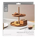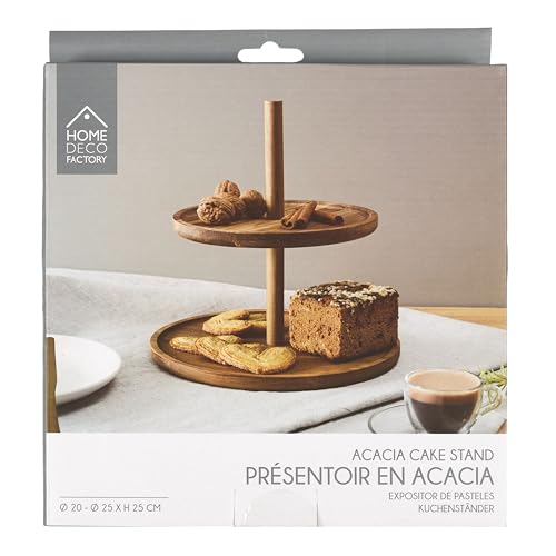 HOME DECO FACTORY - KA0342 Présentoir 2 Étages en Acacia - Service de Table Élégant - Conçu pour Réceptions et Dîners - Facile à Entretenir - 2 Niveaux - Dimensions 30 x 30 cm - Couleur Marron