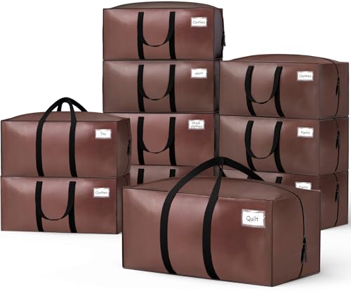 VOUNOT® Lot de 10 Sacs de Déménagement Pliables Grand Format Sacs de Rangement avec Poignées Solides et Bretelles de Sac à Dos Alternative aux Cartons Traditionnels Marron