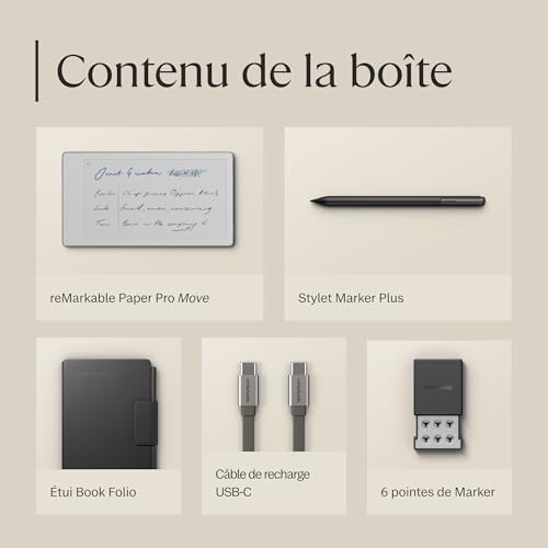 Tablette à Encre reMarkable Paper Pro Move 73 + Stylet Marker Plus + Housse en Cuir