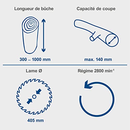 Scheppach Scie à Bûches HS410 | Scie à bois de chauffage | Puissance 2200W | Raccordement 230V | Lame Ø405 mm | Longueur de bois 300-1000 mm | Coupe Ø 140 mm