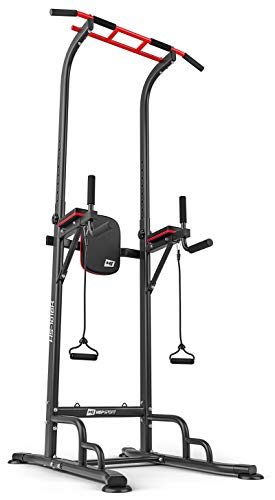 Hop-Sport Station de dips HS-1016K Power Tower multifonction Barre de traction de musculation Chaise Romaine avec 2 extenseurs