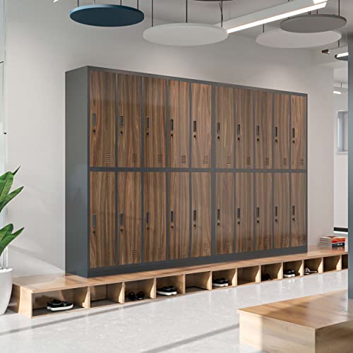 Jan Nowak Casier vestiaire 3B2A Armoire Metallique 6 Compartiments RevĂȘtement en Poudre 185 cm x 90 cm x 45 cm (Anthracite/Imitation Bois)